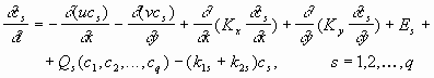 Initial and boundary conditions are added to the system of partial differential equations (1). It is very difficult to treat numerically the system (1). One way to find an efficient solution of this problem is to apply some splitting procedure. Following the ideas in Marchuk [7] and McRae et al [8] the model is divided in four submodels according to the different processes which are involved in: advection, diffusion, deposition and chemistry (together with source term) as follows:
